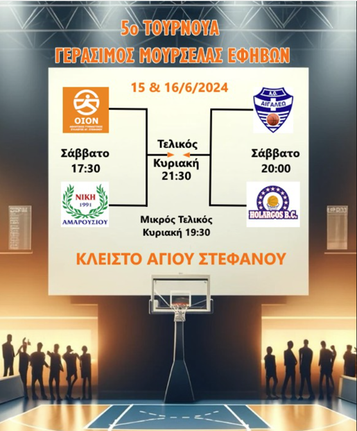 Το Σαββατο 15 και την Κυριακή 16/6/2024 θα πραγματοποιηθεί το Final Four Εφήβων για το 5o τουρνουά Γεράσιμος Μουσελάς. Αναμένεται ένα εξαιρετικής ποιότητας Final Four ανάμεσα σε ιστορικές ομάδες.
